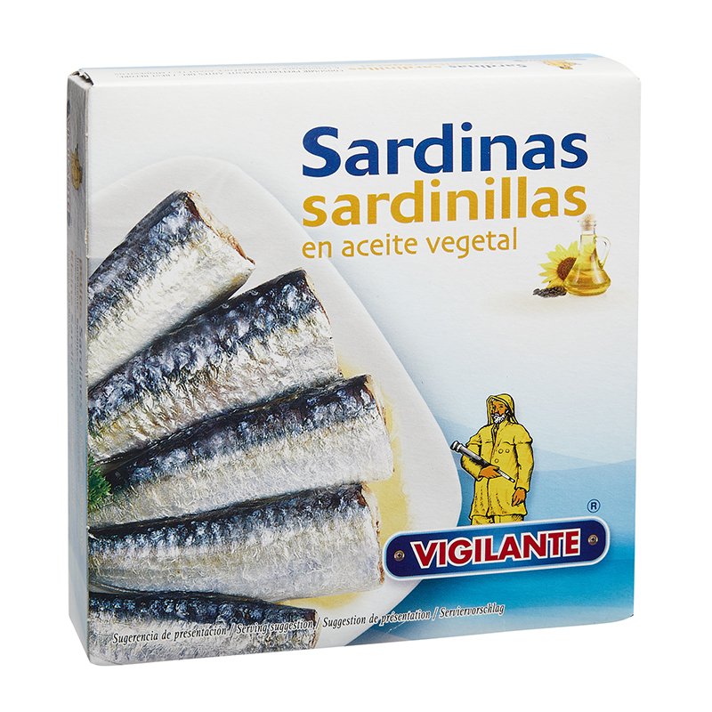 Sardinas Sardinillas en aceite vegetal VIGILANTE Peso neto: 260g